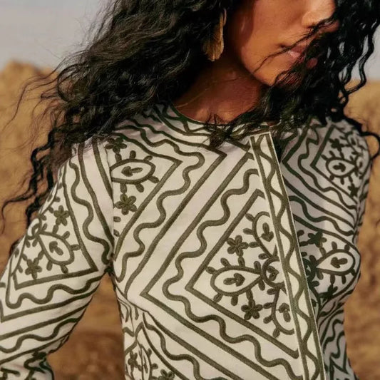 Blouse Rétro Brodée Verte – Été 2025
