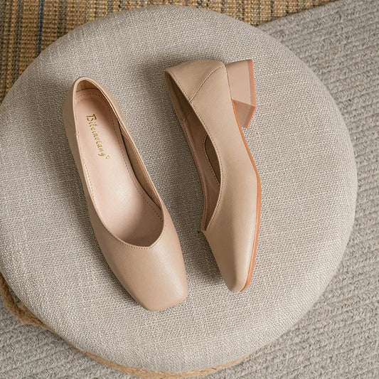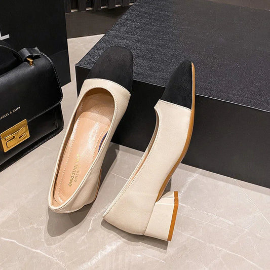 Manon – Escarpins à Talon Carré et Bout Carré, Élégance Bicolore