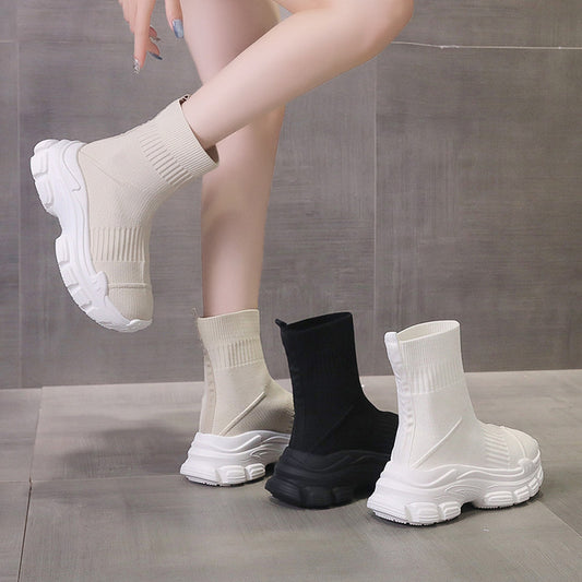 Chaussures et bottes de sport décontractées tricotées à plateforme
